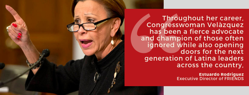 “Throughout her career, Congresswoman Velàzquez has been a fierce advocate and champion of those often ignored while also opening doors for the next generation of Latina leaders across the country,” said Estuardo Rodriguez, Executive Director at FRIENDS. “Her enduring dedication to public service and blazing a trail for others exemplifies the integrity and tenacity of the Latino community. We celebrate her legacy with this award, and look forward to one day giving her story a permanent home on the National Mall in a Smithsonian National American Latino Museum.”